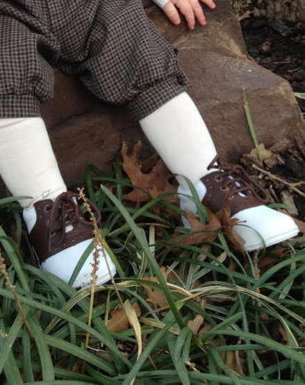 Sizing Information - The size shown is The Shoe Size for Ages 5 months to 30 months approximately. These softly constructed brown and white leather saddle shoes have non-slip treads. They do run big by a full size refer to the measurements below to order the correct size. The sole lengths (measured on the outside), are: 7(61/2 "), 6(6"), 5(5 3/4"), 4(5 1/2"), 3(5 1/8") and 2(5").