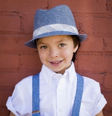 **Sale** Linen Boys Fedora w Plaid Band - Chambray