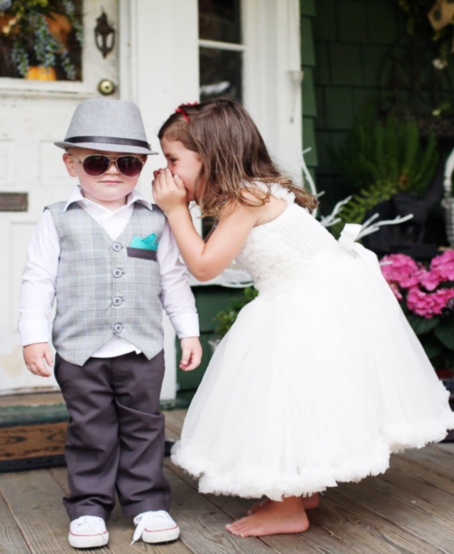 This pale ivory Petti Dress is perfect as a flower girl dress or for special occasions and birthday pictures. The boy model is shown wearing the glen plaid vest and gray fedora - see related items below.
