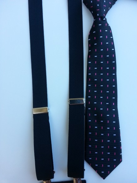 Boy's Microfiber Black Print Zipper Ties - 12 in.